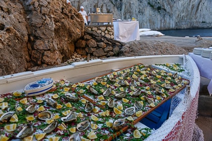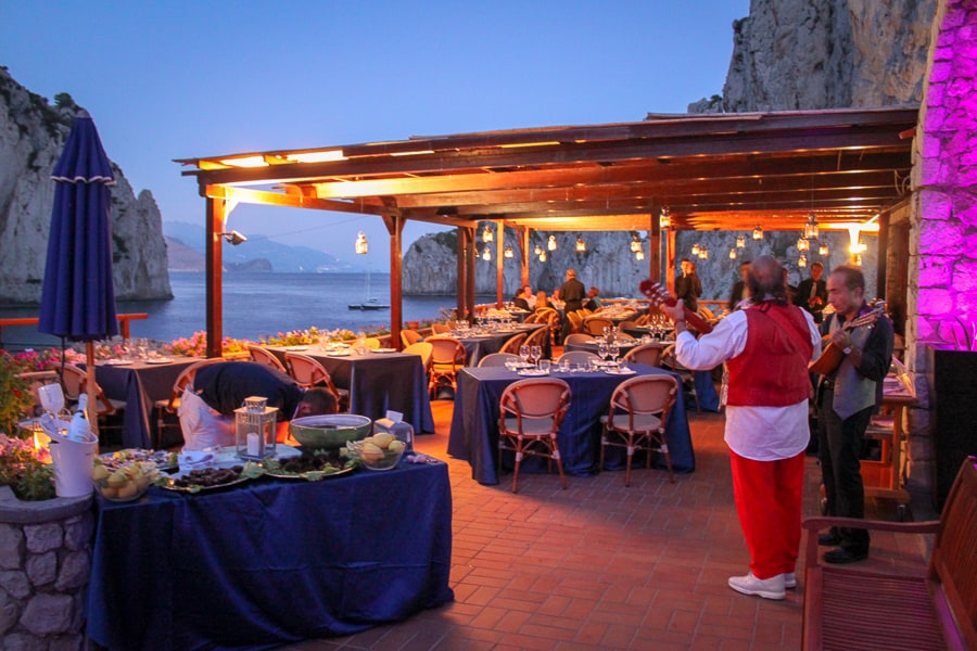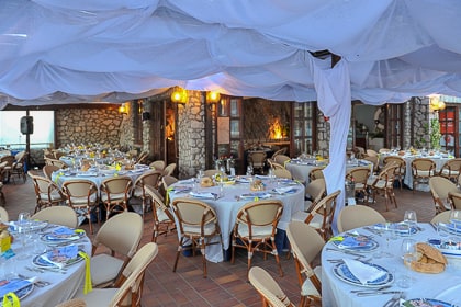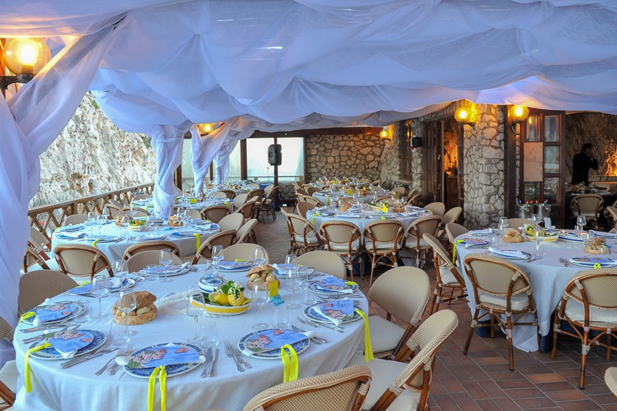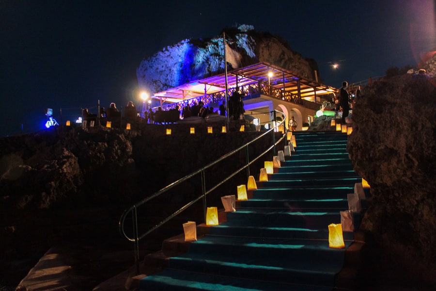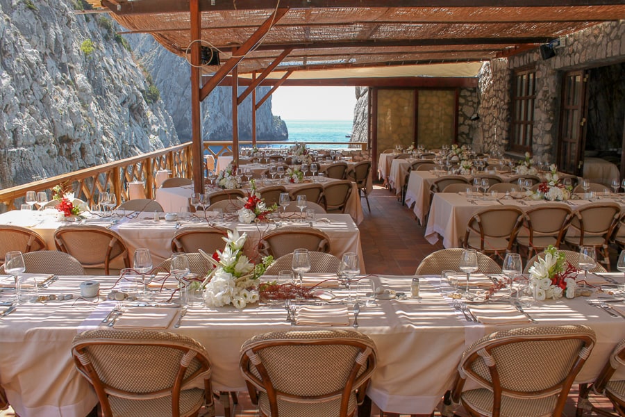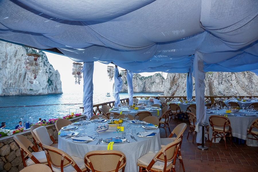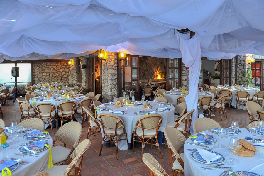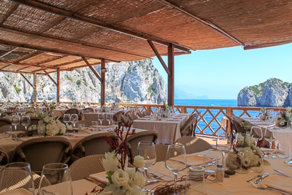 If the weather is inclement, we can easily move your event to the covered terrace at Canzone del Mare, our beach club in Marina Piccola that also boasts exceptional views of the Faraglioni.