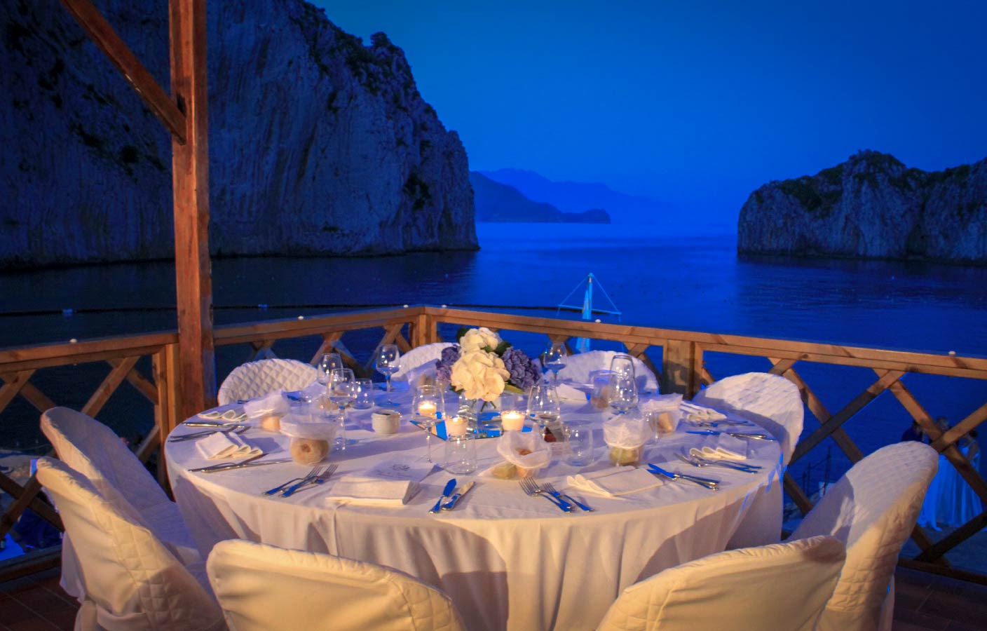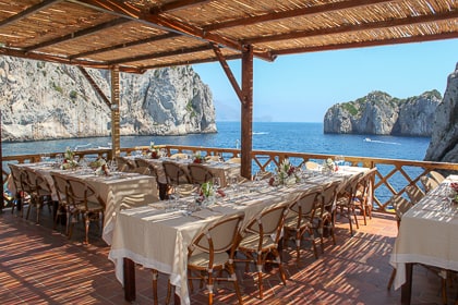 Image a summer evening on Italy's island of Capri, with the moonlight setting the Faraglioni aglow, and the water sparkling like stars...this romantic backdrop could be yours for your special event. From May to October, you can hold your private evening event at Da Luigi, including weddings, parties, and professional events. We also offer boat shuttle service to and from Marina Piccola.