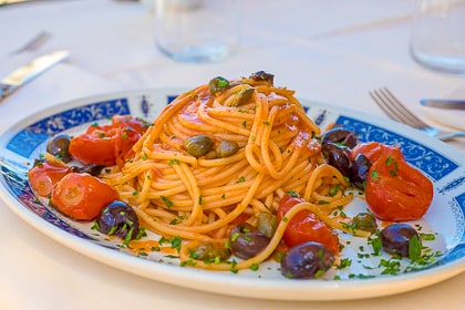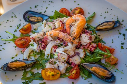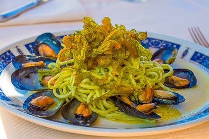 Ma allo stesso tempo è impossibile resistere al richiamo dei piatti tipici della cucina di Capri: l’immancabile “Caprese”, l’insalata di mozzarella, pomodoro e basilico, gli squisiti ravioli ripieni di maggiorana e caciotta, prima di finire con un altro “must” come la torta caprese, rigorosamente servita con una pallina di gelato accanto.