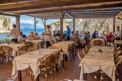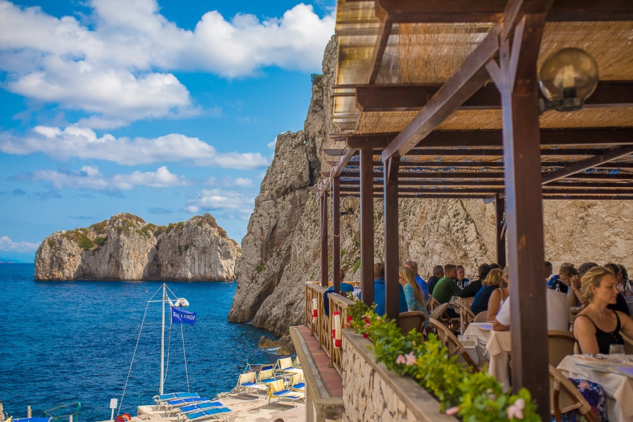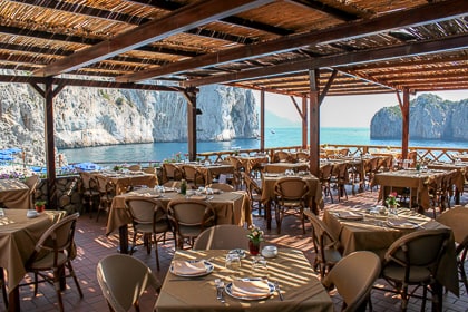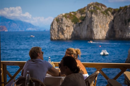 Gustare le specialità della cucina mediterranea ai piedi dei Faraglioni, con il mare di Capri appena al di là del tuo tavolo è un privilegio che soltanto il ristorante Da Luigi può darti. E così, un pranzo sulla sua terrazza diventa un viaggio che unisce colori, profumi, gusto e un panorama spettacolare.